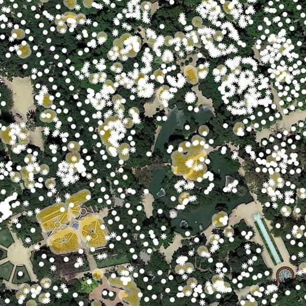espectro cromático que los ciclos de floración incorporan a nuestros entornos. Esta simulación artística modela la vegetación de la ciudad como un único organismo interconectado que nace y evoluciona para abrirse en exp